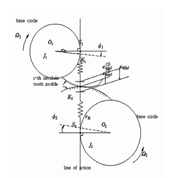 수학적 모델은 양 기어의 기초원 사이에 접선방향으로 묶여있다고 가정한다.