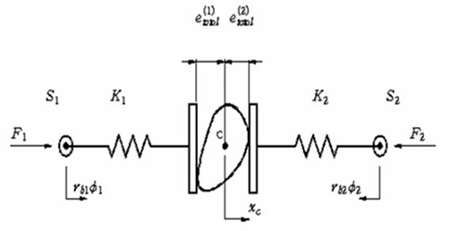 물리고 있는 치는 기어의 회전체에 붙어있는 외팔보로 간주하여 스프링으로 모델링한다.