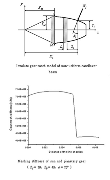 또한 외팔보로 모델링된 기어 치는 기어 물림의 접촉점이 변동하는 관계로 <그림>과 같이 한 물림주파수 주기 내에서 강성계수가 변하는 소위 시변특성을 갖는다.