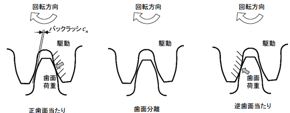 ② 고속 운전시 치면분리가 일어날 때 분리량이 대단히 커지면 물리고 있는 이빨의 뒷면에 백래시를 넘어서 치면을 때리는 현상이 있으므로 백래시를 적게 하는 것이 좋다.