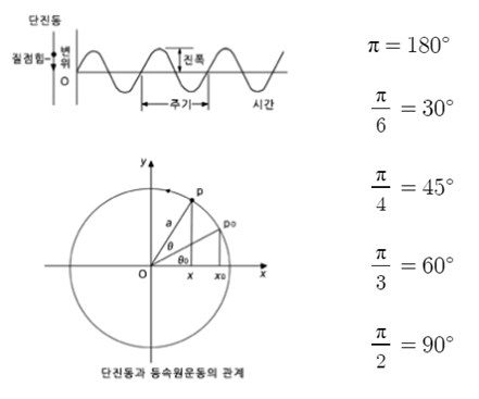 가장 간단한 형태의 진동은 단진동 운동으로 특정점의 위치가 Sin함수 형태를 나타내는 운동이다
