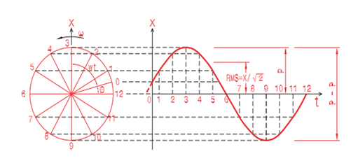 진동의 크기의 위상이 + - 로 바뀜 주기적으로 반복됨 진동 크기의 대표값을 나타내야함.