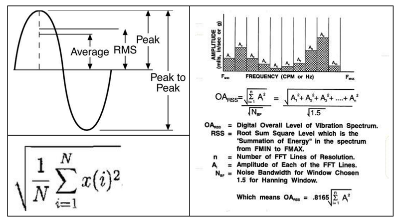 •rms (root mean square, 실효치) : 변위, 속도, 가속도에 사용 예, 정현파(= 0.707× peak)