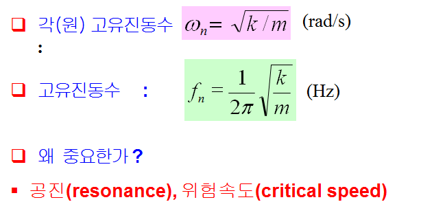 •이러한 수정은 운전속도에서 진폭을 낮추게 되며 계의 고유진동수에 직접적으로 영향을 미침