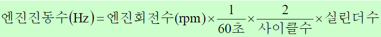 → 여기서 2차 성분과 3차 성분은 엔진의 크랭크 샤프트 회전수를 기준으로 2배 또는 3배의 회전속도로 진동 가진력이 발생된다는 것을 의미한다.